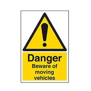 Danger Beware Of Moving Vehicles Sign - Portrait - 200mm x 300mm - 2mm Rigid Plastic