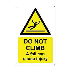 Do Not Climb A Fall Can Cause Injury Safety Sign - 1mm Plastic sign (300mm x 200mm)