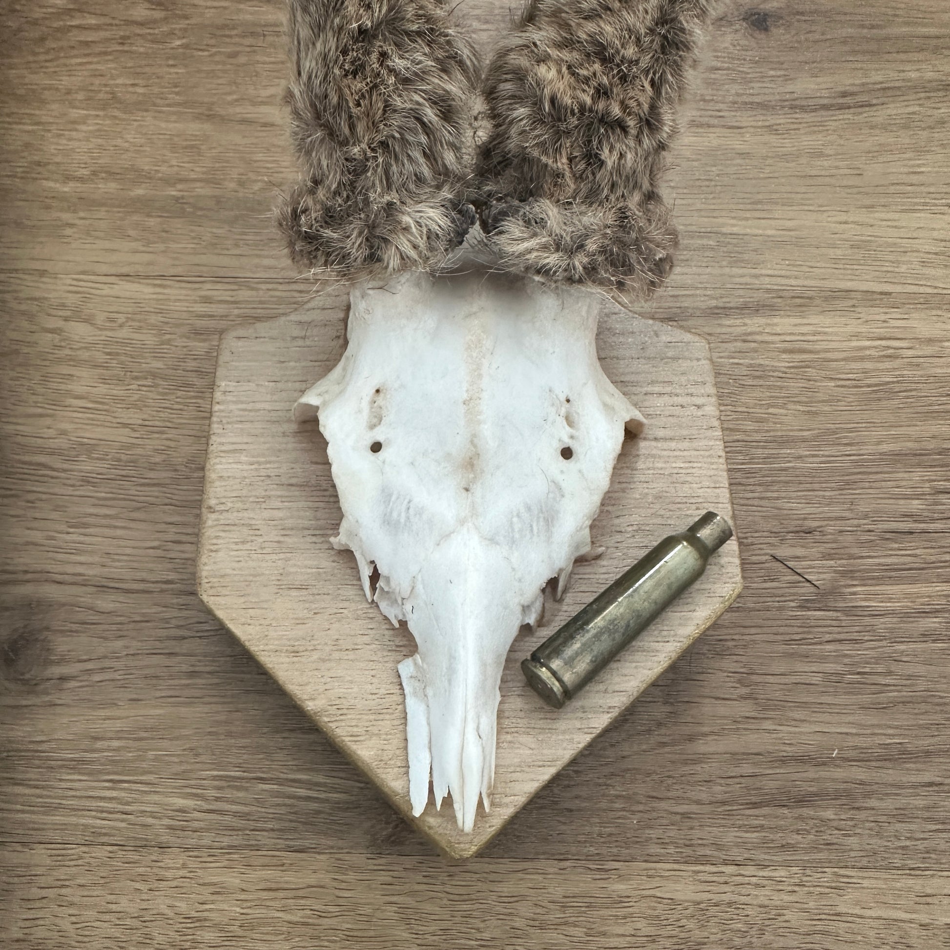 This Large 6 Point Sussex Roe Deer Antler In Velvet is mounted on a oak plaque with a wall mount and features a 6.5 x 55 brass case. It showcases natural variations in size and shape typical of Roe Deer antlers. Ideal for collectors or as a decorative piece in any setting.